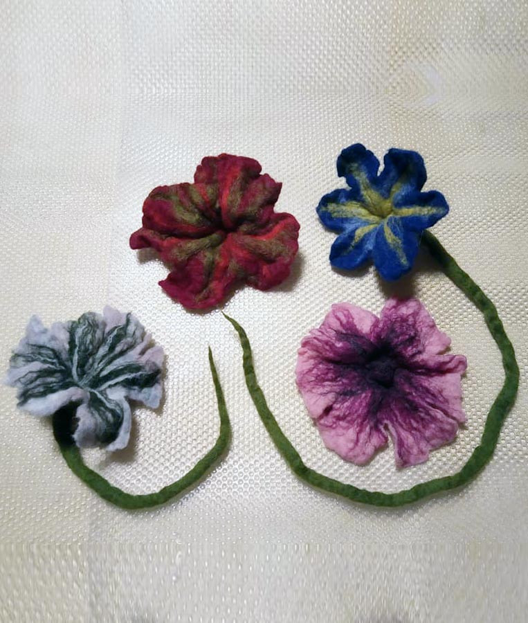 Z miękkiej wełny czesankowej, przy pomocy ciepłej wody, mydła i własnych dłoni, wyczarujemy niezwykłe formy: delikatne kwiaty, ozdobne dredy i broszki, które mogą stać się piękną ozdobą włosów, ubrania lub torebki.